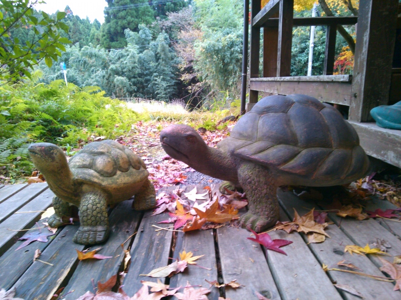 お店の前のカメさん親子。
