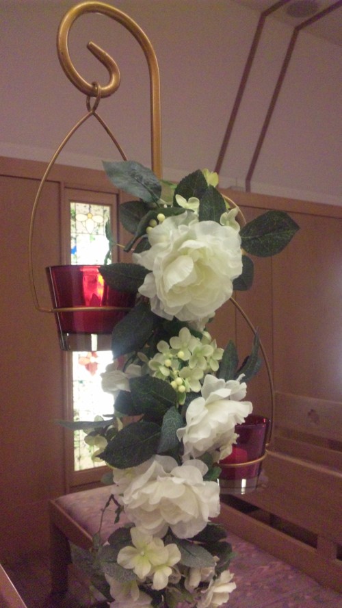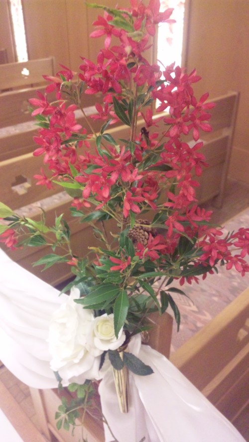 クリスマスヴァージョンでは チャペルのお花の色も変わり