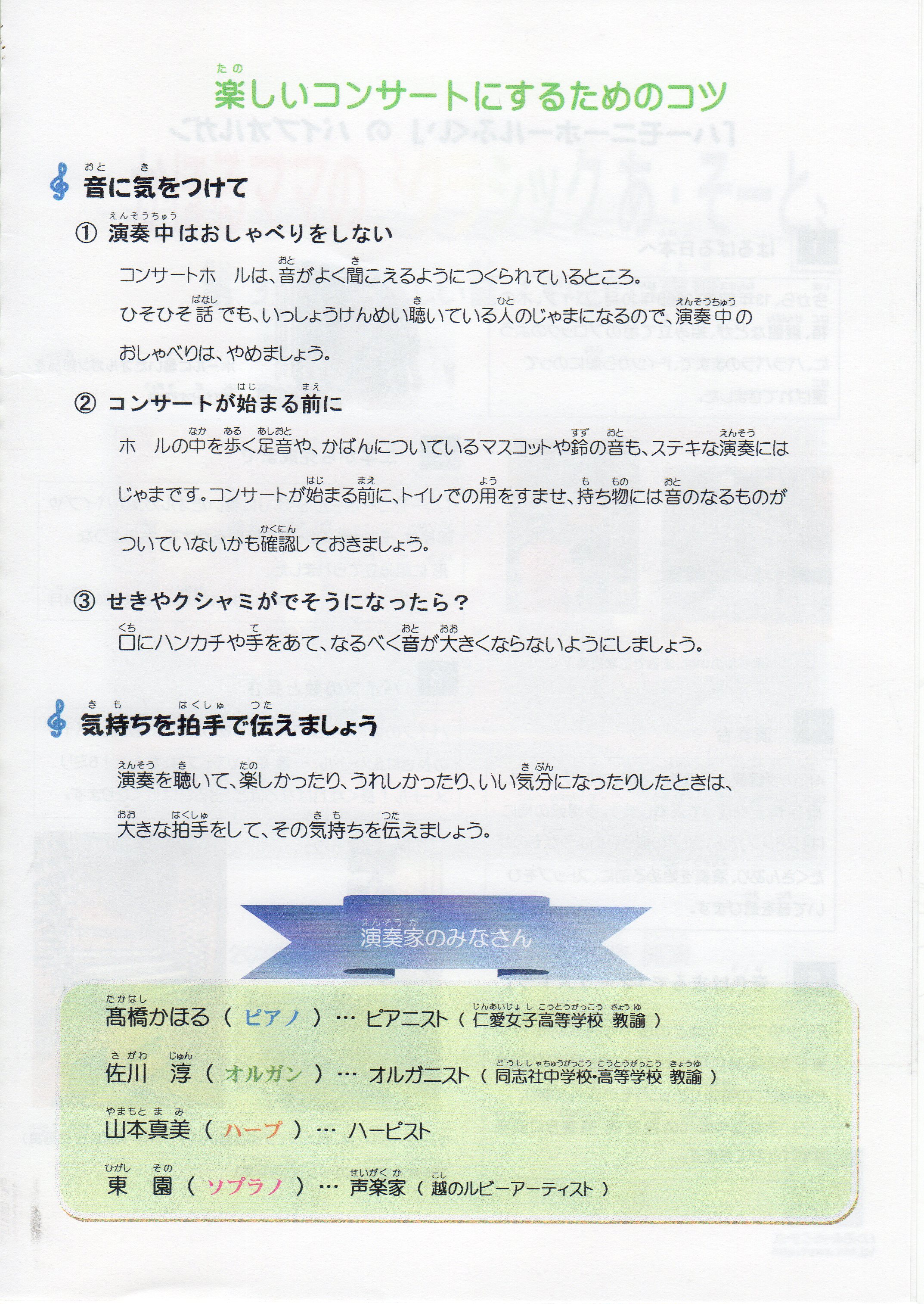 コンサートを聴くためのマナーをやさしくかほる先生が教えてくれます。