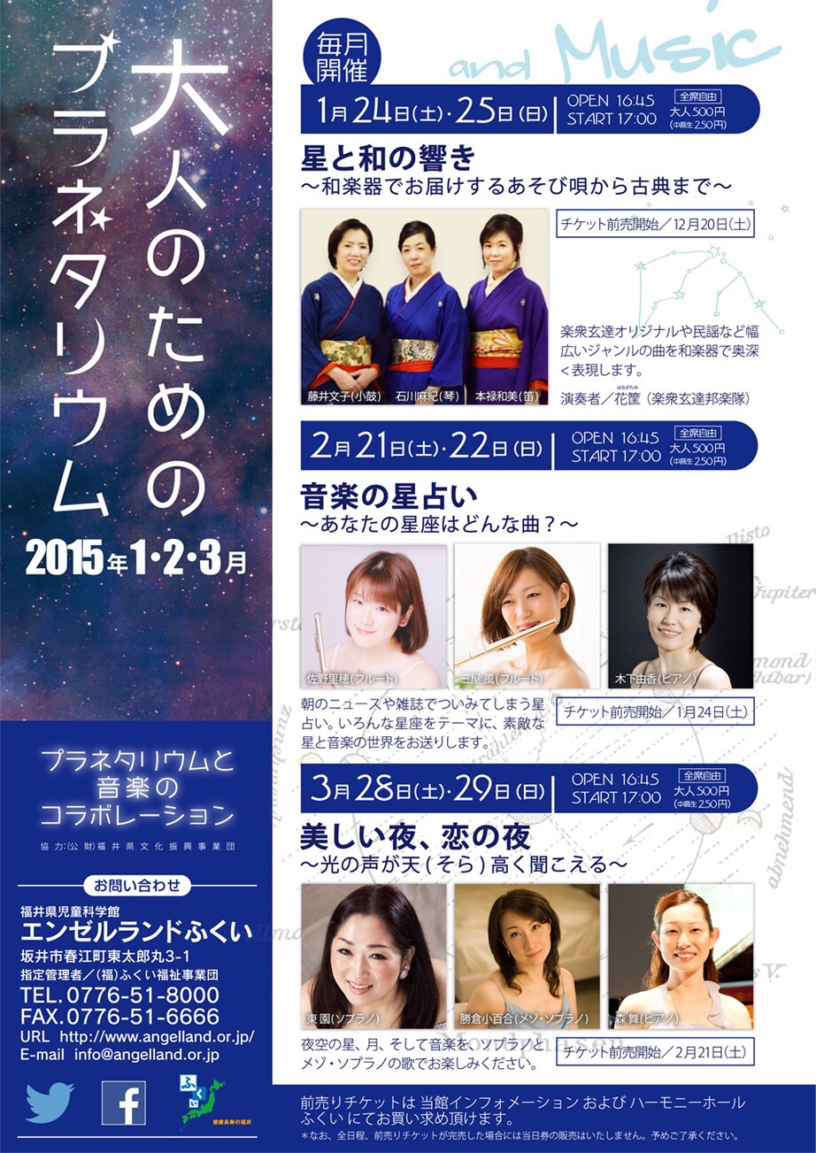 大人のためのプラネタリウムコンサート、2日間 無事演奏終了いたしました。