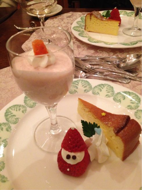 デザートにはイチゴで作ったサンタクロースが乗ったスイーツプレート